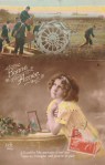 Plaque de cuivre ayant servi à l’impression en photogravure d’images Poulain vers 1910 et deux des gouaches originales correspondantes