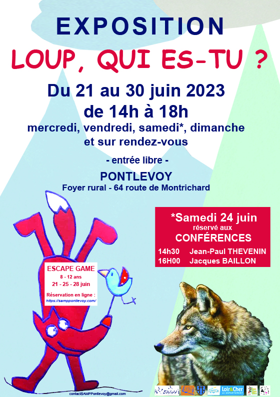 Une exposition « Loup, qui es-tu ? » avec d’une part, l’animal sauvage (11 panneaux prêtés par le service exposition du conseil départemental), et d’autre part, le personnage du loup créé au fil du temps (contes et fables à l’aide d’images publicitaires Poulain, de reproduction d’images d’Epinal et de travaux d’enfants), s’est déroulée les mercredis, vendredis et dimanches de 14h à 18h du 21 au 30 juin.