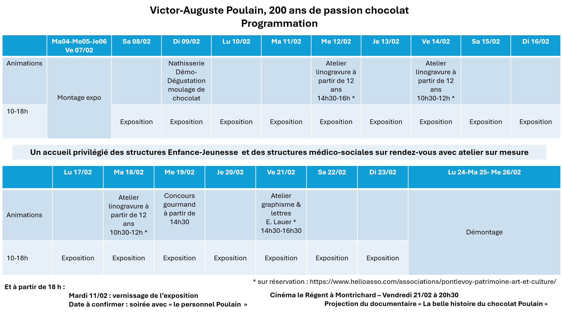 Nous déployons une activité intense de préparation de cet évènement : choix des collections à exposer, modélisation du parcours de visite, recherche de matériaux pour lancer la construction du mobilier d’exposition en chantier de bénévoles, mais également recherche de soutien financier sur la plateforme régionale efferve’sens : https://effervesens-centrevaldeloire.org/decouvrez-les-projets/detail/victor-auguste-poulain-200-ans-de-passion-chocolat.