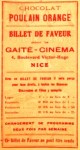Elle s’intéresse au cinéma, encore à ses balbutiements, et ouvre quelques salles de projection ou passe des accords avec l’exploitant Pathé. Parallèlement, elle distribue dans les tablettes un « billet de faveur » donnant droit à demi-tarif sur les billets d’entrée. Par ce biais, la chocolaterie acquiert un formidable moyen d’étendre la connaissance de sa marque dans de nombreuses régions de France.